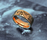 Engraved Zelda Mosaic Ocarina Links Master Sword & Shield Majora Black Tungsten Ring Flat Polished - 4mm to 12mm - Lifetime Size Exchange
