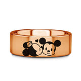Cute Mickey and Minnie Mouse Wedding Band, Disney Rose Gold Ring, Mickey Minnie Wedding Ring