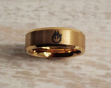 This is a beautiful Star Wars Inspired custom engraved design on our Gold Tungsten Wedding Band.