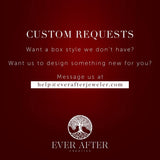 All of our boxes are made with 100% real Black Walnut wood and have a soft black velvet inner lining. All wood boxes are unique in grain pattern and can vary in color/appearance from the photo. All engravings are fresh and made to order so there might be a slight engraved wood smell that fades with time.