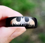Batman Symbol Wedding Ring, Gotham City Ring, Superhero Wedding Band