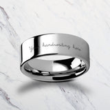 Custom Personalized Engraved Handwritten Tungsten Ring Flat and Polished - 4mm to 12mm Available - Lifetime Size Exchanges