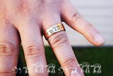 This is a yellow gold plated Star Wars engraved ring with blueprint schematic ATAT and ATST walking along the entire outside of the ring. The design goes around the entire ring! This style is also available in black, silver, and rose gold upon request.