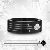 This is an awesome custom engraved Star Wars Inspired Death Star with Tie Fighters chasing it. The ring is simplistic in design but beautifully recognized by true Star Wars fans!