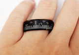 This is our inspired Tetris video game wedding band on our Black Tungsten Carbide ring. The engraving itself is entirely wrapped around the entire ring :)