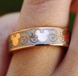 Disney Filigree Baroque Wedding Band, Mickey and Minnie Engagement Ring, Disney Wedding Ring for Men