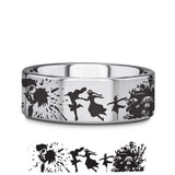 This is our super adorable 100% custom engraved Howl's Moving Castle design on our Silver Tungsten Carbide Ring. Perfect for Studio Ghibli fans! The entire design is displayed on the bottom of the photo, it is not a wrap around entire design.