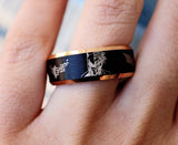 Check out our awesome one of a kind Batman and Joker wedding band available in multiple colors. The engraving design wraps around the entire ring.