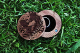 All of our boxes are made with 100% real Black Walnut wood and have a soft black velvet inner lining. All wood boxes are unique in grain pattern and can vary in color/appearance from the photo. All engravings are fresh and made to order so there might be a slight engraved wood smell that fades with time.
