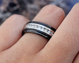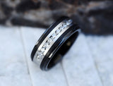 Black Polished Edge Tungsten Carbide Ring, Beveled Wedding Band, Diamond with Black Trim Wedding Ring, Black and Silver Wedding Band - 8mm