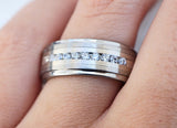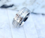 Silver Polished Edges Ring, Men's Tungsten Wedding Band with Brushed Silver Inlay Center, Step Edge Wedding Band - 8mm