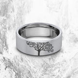 This is a beautiful Tree design on our Silver Tungsten Carbide Wedding Band. Our engraved design conveys a simplistic yet bold eye catching design.