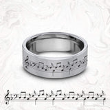 Music Note Wedding Band, Music Note Ring, Music Treble Clef Engagement Ring, Musical Notes Jewelry