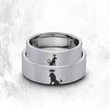 Lion and Lioness Couples Rings Tungsten Carbide, Lion and Lioness Ring, Silver Band Ring