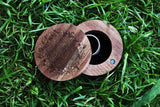 All of our boxes are made with 100% real Black Walnut wood and have a soft black velvet inner lining. All wood boxes are unique in grain pattern and can vary in color/appearance from the photo. All engravings are fresh and made to order so there might be a slight engraved wood smell that fades with time.