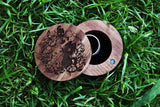 Check out our beautiful one of a kind Kiki's Delivery Inspired ring box with our infamous duo. All of our boxes are made with 100% real Black Walnut wood and have a soft black velvet inner lining. All wood boxes are unique in grain pattern and can vary in color/appearance from the photo. All engravings are fresh and made to order so there might be a slight engraved wood smell that fades with time.