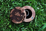 Check out our beautiful one of a kind Spirited Away duo of Chihiro and Haku ring box. All of our boxes are made with 100% real Black Walnut wood and have a soft black velvet inner lining. All wood boxes are unique in grain pattern and can vary in color/appearance from the photo. All engravings are fresh and made to order so there might be a slight engraved wood smell that fades with time.