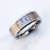 Deer Antler Wedding Band, Mens Natural Deer Ring, Hunting Ring, Deer Antler Inlay Ring, Deer Antler