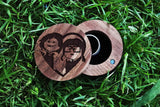 Check out our adorable Carl and Ellie inspired ring box made of Black Walnut. A beautiful one of a kind ring box you will not find anywhere else. An amazing gift for this epic duo.