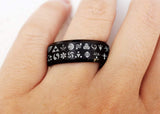 This is our awesome custom made Zelda Inverted design on our Black Tungsten Carbide wedding band. This design is absolutely beautiful and perfect for Legend of Zelda fans. This is not a wrap around print but can be if requested.