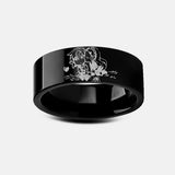 This is our beautiful custom made Zelda and Link design on our Black Tungsten Carbide ring.