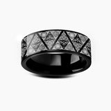 This is our beautiful custom made Zelda design on our Black Tungsten Carbide wedding band.