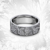 This is an awesome Silver Tungsten Carbide Circuit Board Ring. The design is fully wrapped around the entire ring. We also have the option to engrave the inside of the inner ring as well for a fully personalized ring for your loved one.