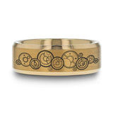 Dr. Who Couple Gold Tungsten Band Gallifreyan Pattern Together Forever Through Time and Space Rings
