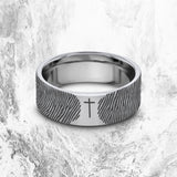 Fingerprint Cross Wedding Bands, Cross Engagement Rings, Actual Fingerprint Wedding Band,
