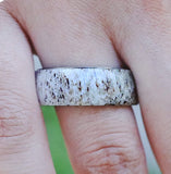 Deer Antler Ring, Domed Deer Antler Inlay Wedding Band, Titanium Deer Antler Ring for Men
