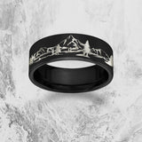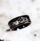 Mountain Ring, Forest Ring, River Ring, Howling Wolf Ring, Nature Ring, Wanderlust Wedding Band