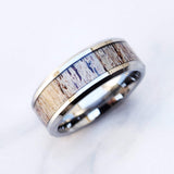 Deer Antler Inlay Wedding Band, Men's Antler Engagement Ring, Hunting Ring, Deer Antler Inlay - 8mm