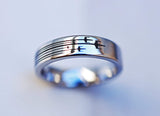 This is an awesome custom engraved Star Wars Inspired Millenium Falcon with Tie Fighters chasing it. The ring is simplistic in design but beautifully recognized by true Star Wars fans!