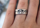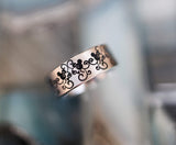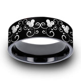 This is a beautiful Disney Inspired ring that shows a very unique and one of kind design that is custom engraved around the entire ring. A ring that you won't find anywhere else :) the design is engraved on our Black Tungsten Ring. Perfect for that special someone/disney lover.