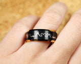 This is a beautiful Disney Mickey Mouse EKG Inspired design on our Gold Plated Tungsten Polished Beveled Ring with Brushed Black Center. The design shows a beautiful EKG symbol with the outline of Mickey and Minnie Mouse within it along with the infamous Disney Castle. Showcase your love for Disney and your loved one all together with this beautifully custom engraved ring.