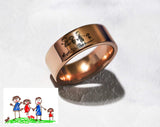 This is a beautiful custom rose gold plated tungsten carbide ring with a custom childs drawing engraved on the outside. You can have your actual childs drawing on your ring to cherish!