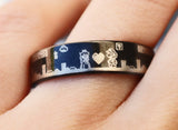 Super Mario and Super Mario Princess Wedding Ring, Super Mario Black Tungsten Wedding Band, Video Game Ring, Super Mario Mens Ring